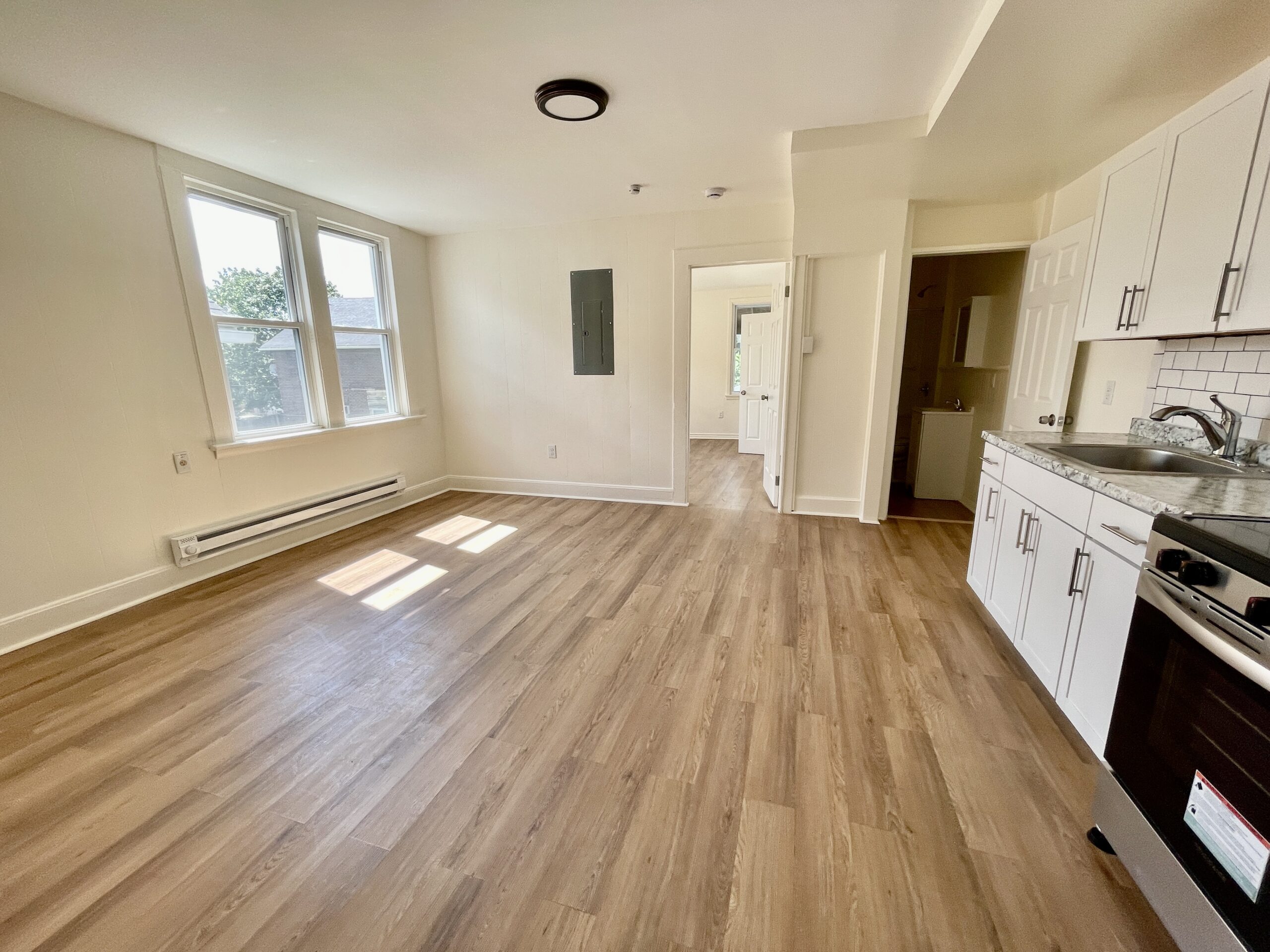 Completely brand-new renovated units professionally managed by Parasole property management. The whole building which has one bedroom studios, one bedroom apartments, two bedroom, two bath apartments, and a three-bedroom apartment. All have new windows, new walls, insulation, new floors, paints, new bathrooms, and kitchens with new plumbing and electric. Everything 100% brand new. Building has proper vestibule with locking mailboxes and electronic key entry with electronic payment op washer and dryers for the building. Property is a proper 8 unit building with a front and rear entry for all apartments. Each apartment is spacious with plenty of closet space. Apartments have 10-foot ceilings and vinyl plank flooring throughout with modern kitchens with stainless appliances and glass top ranges. There is on street and off-street parking up to four cars. Basement has a hot air furnace, which will heat up the basement and vents cut into the first-floor apartments and hallway heating up all the way to the second-floor hallway and residual heat into the second floor apartments to help alleviate cost of electric heating. **No Pets**