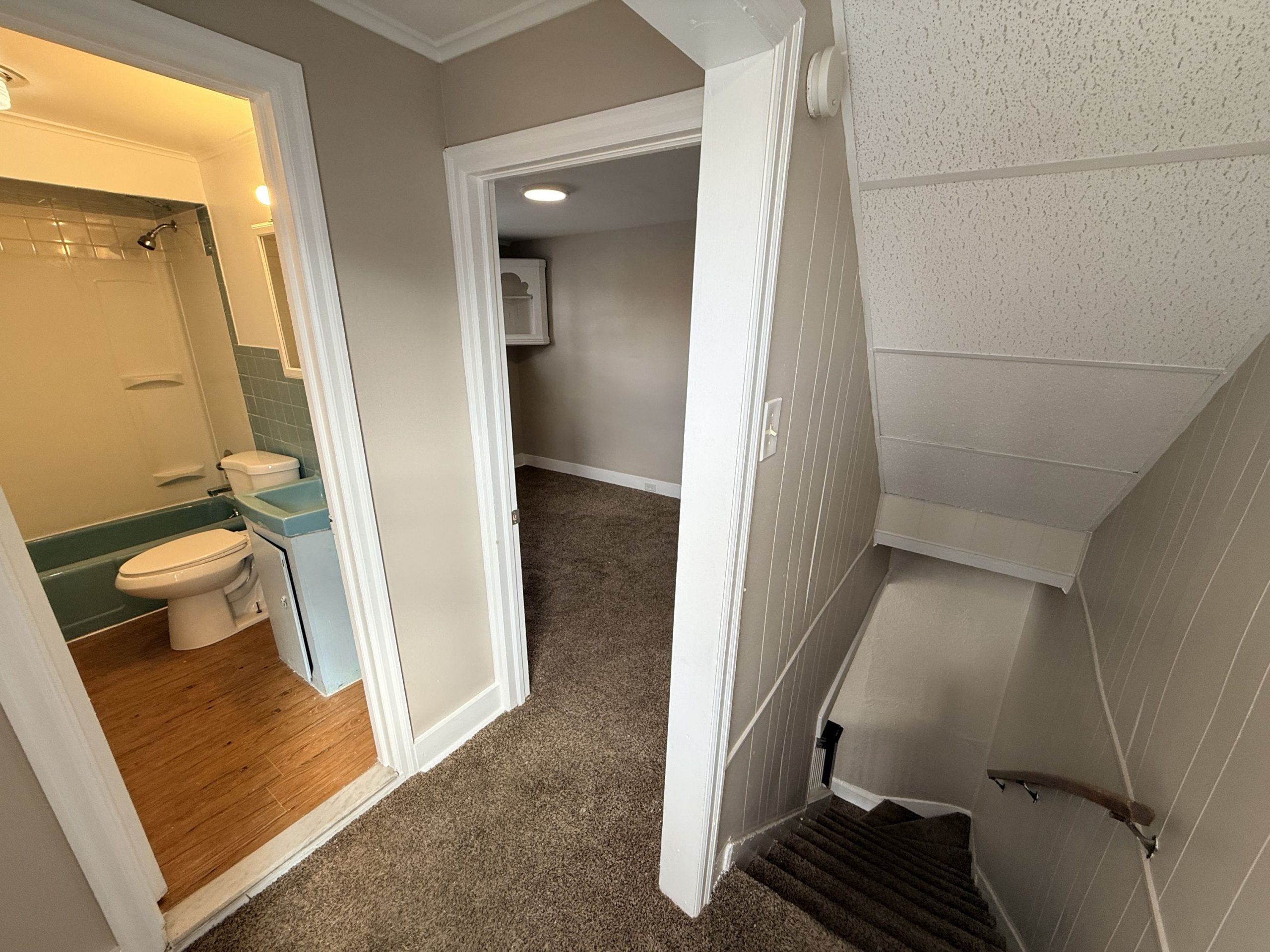 Up for rent is freshly painted two bedroom house only two blocks away from Francis Willard elementary school in West Scranton. It\’s an end unit row home two bedrooms, one bath, large kitchen, dining room and living room with washer and dryer hook up in the kitchen and a walk-in pantry. First floor has wood floors, and carpet on the second. There\’s plenty of closet space and a large clean basement and shared backyard along with a small private area.