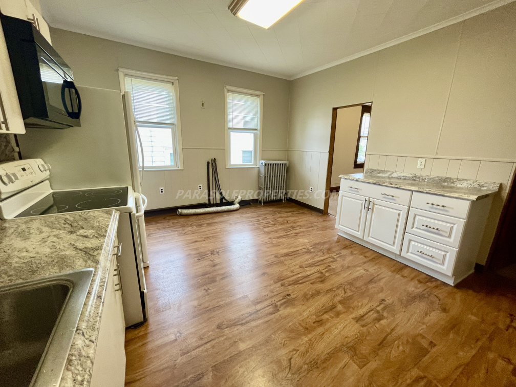 New rental offered by Parasole Property Management. Come check out this freshly painted 1st floor apartment that boasts 2 bedrooms and 1 bathroom. Large eat in kitchen with plenty of cabinets as well as a washer / electric dryer hook up. This unit includes a nice shared backyard along with a 1 car garage. Not many apartments have access to a garage! Must check it out today!
